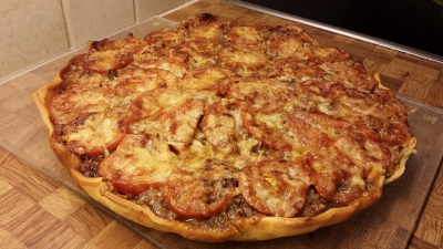 Nun diese Fleischmasse auf dem Kuchenteig gleichmässig verteilen.