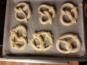 Diese Mänge ergiebt ca. 12 Brezel, je nach Grösse. Bei mir hatten 6 Brezel platz auch einem Blech.