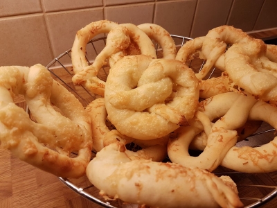 Brezel mit Käse Füllung. Mmmh, das schmeckt lecker.